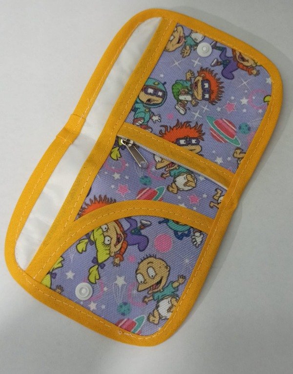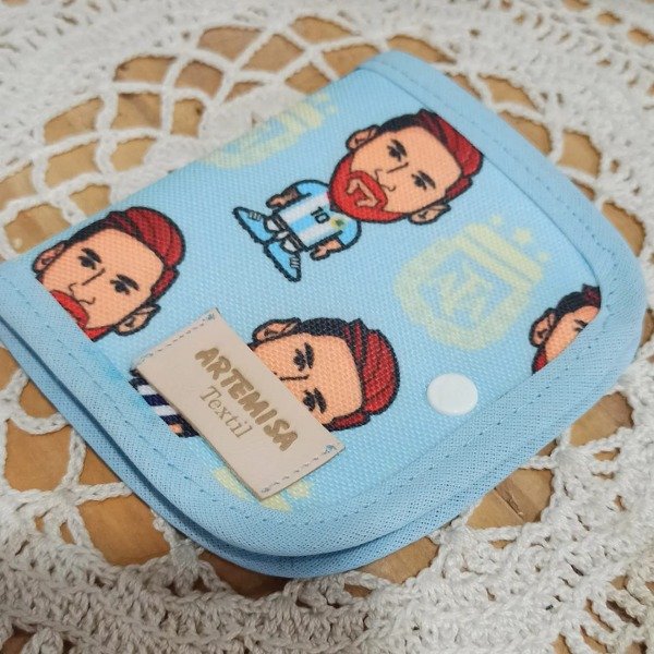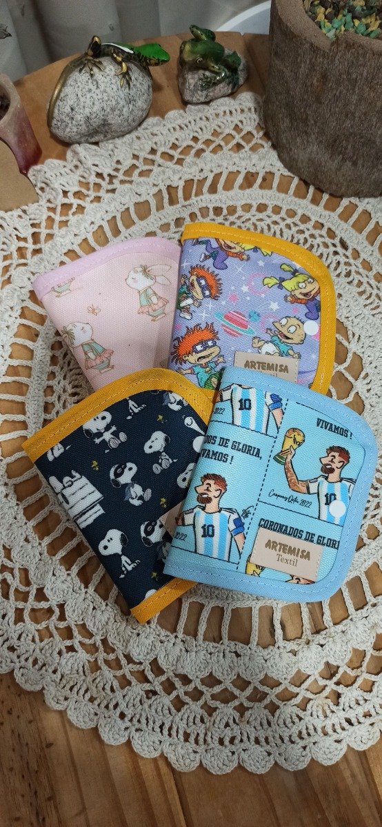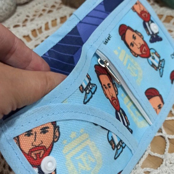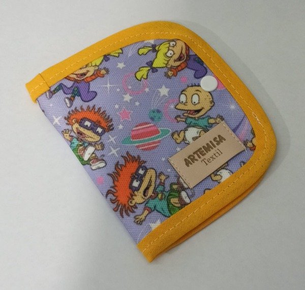 Confeccionada en cordura estampada, forrada con silver. Cierre tipo snap. Interior con solapas para billetes/tarjeta de juegos y bolsillito con cierre. Lavable a mano, agua fria.