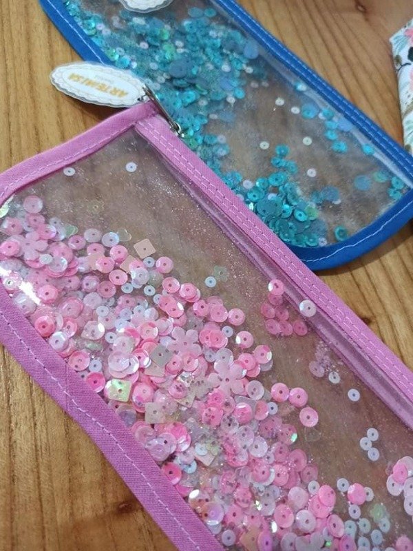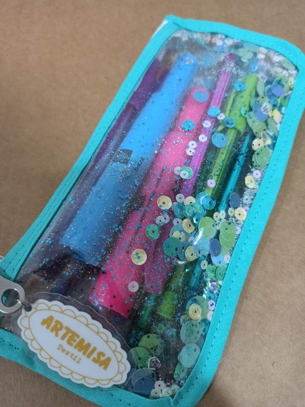 Realizado en nylon cristal con bordes en cinta bies. Interior relleno de lentejuelas y pequeños adornitos en distintas gamas de colores. La cinta bies va al tono de la gama de lentejuelas que elijas. Capacidad pequeña, ideal para quienes gustan llevar pocas cosas, o docentes, preceptores, universitarios, etc. Se recomienda solo limpiar con trapito húmedo el nylon.