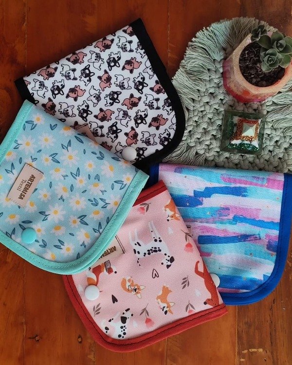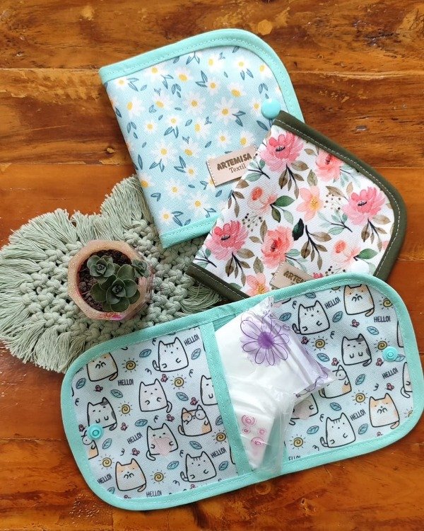 Confeccionado en cordura estampada (puede haber a veces disponibles diseños en lona o provenzal) , interior puede variar en silver o gabardina según lo que haya en stock, cierre tipo snap. Pensado para guardar la higiene femenina, pero en verdad podes usarlo para guardar lo que quieras! (plata, documentos, medicamentos, etc). Lavable a mano, agua fria.