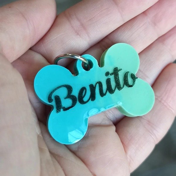 Tamaño mediano. Pueden variar las tipografías. Podes elegir el color que gustes tené en cuenta que no sea un color muy oscuro ya que el texto se imprime en negro. Una vez realizada la compra contactate al whatsapp para pasarme los datos de la mascota.