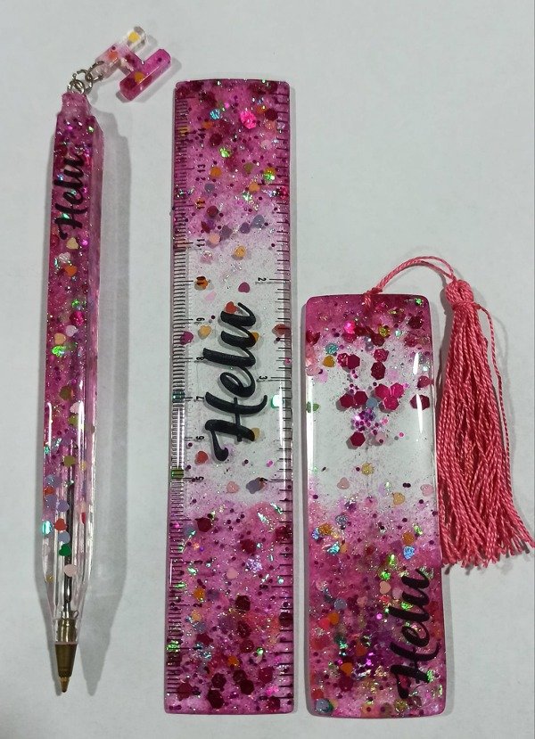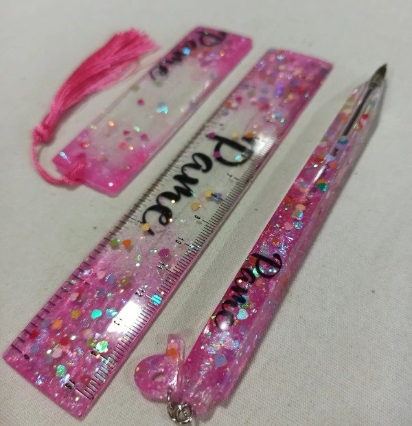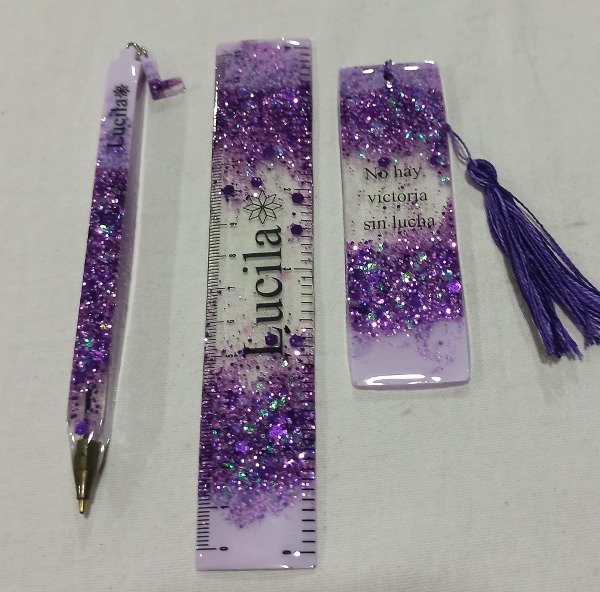 Trae: 1 lapicera (podes elegir con la opción recargable o descartable) + regla 15 cm + señalador de página mini.
