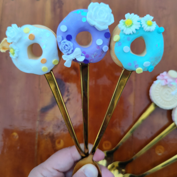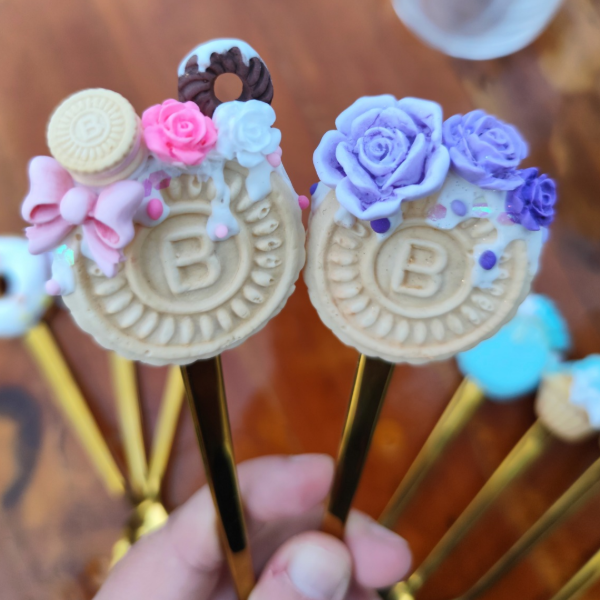 Cucharitas metálicas largas decoradas con apliques en porcelana fria, protegidos para que puedas limpiarlos perfectamente y que te perduren con los años. Metal super duro! Poquitas unidades!!!
