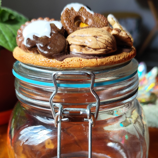 Frasco hermético, de vidrio, con tapa decorada en porcelana fria, perfectamente protegido para que puedas lavarlo sin problema. Podes elegir una gama de colores si queres que no sea igual al de la foto, eso lo podes aclarar por whatsaap luego de hacer la compra, o en NOTAS al momento de hacer tu pedido.