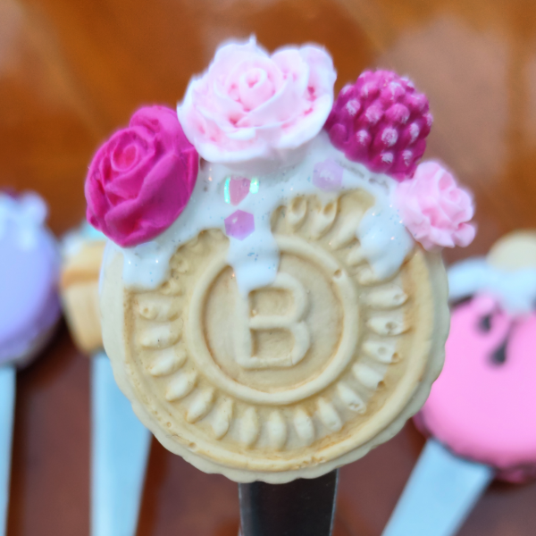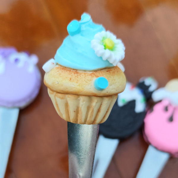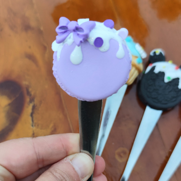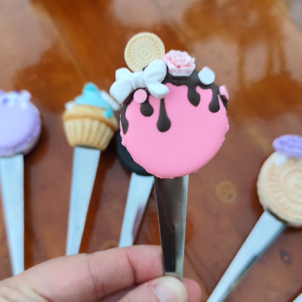 Tenedores metálicos decorados con apliques en porcelana fria. Miden 13cm de largo aprox + aplique.